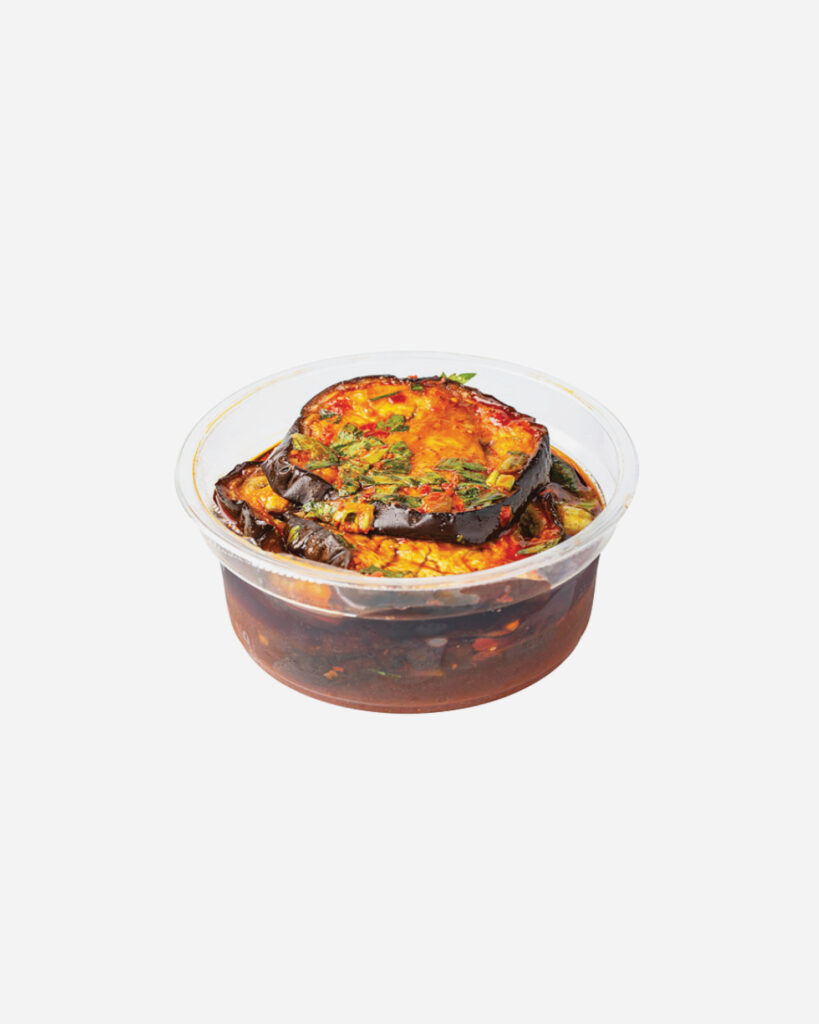 רכיבים: חציל (62%), מים, שמן זית, מיץ לימון, שמן קנולה מזוכך, חומץ, סלרי, סוכר לבן, פפריקה מתוקה, מלח שולחן, שום, אבקת צ'ילי, כמון.