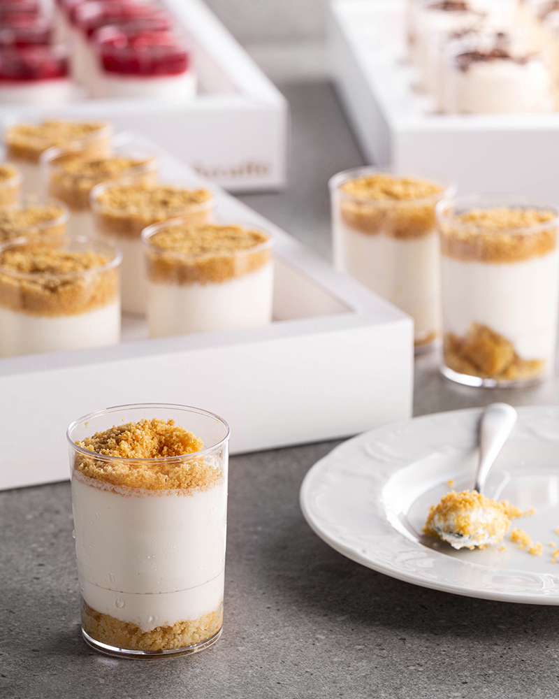 כוסיות עוגת גבינה פירורים (ללא תוספת סוכר) לאירוע חגיגי.