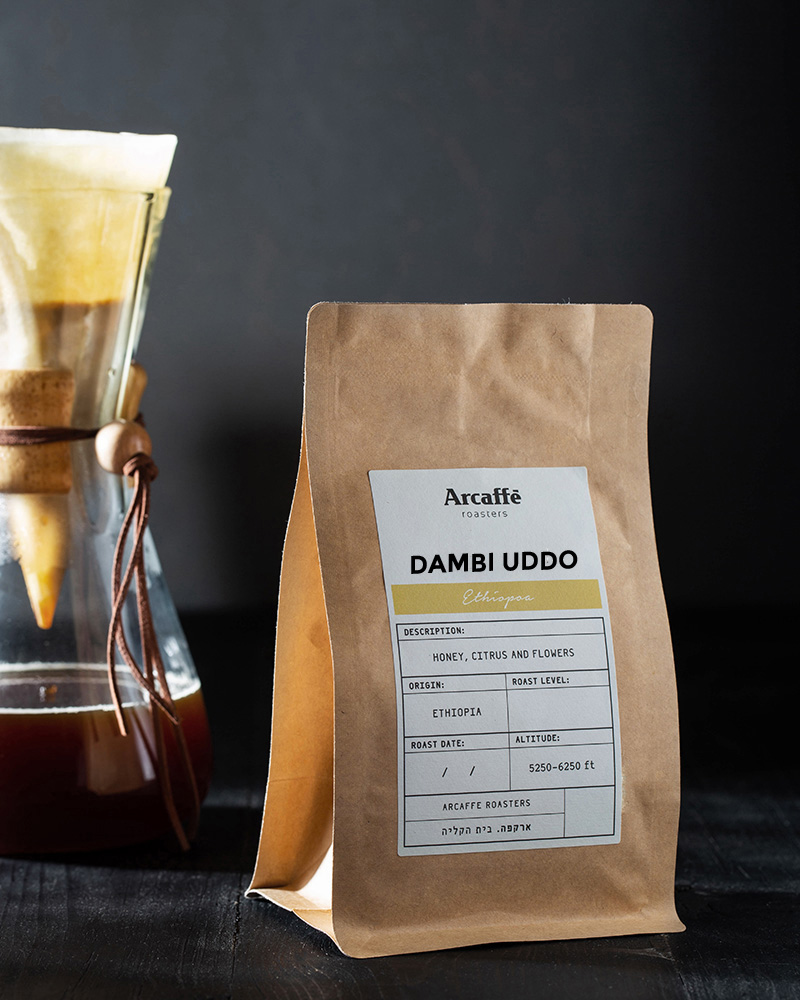 קפה חד זני סינגל אסטייט speciality coffee גדל בחוות Dambi uddo באתיופיה. קפה 100% ערביקה בעיבוד טבעי, עדין עם נגיעות יסמין ואשכולית.