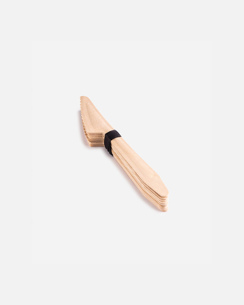 חבילה של 10 סכינים חד פעמיים מעץ, לשמירה על סביבה ירוקה.