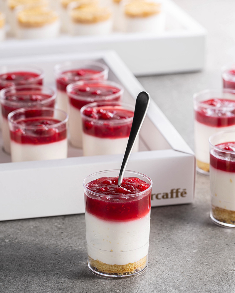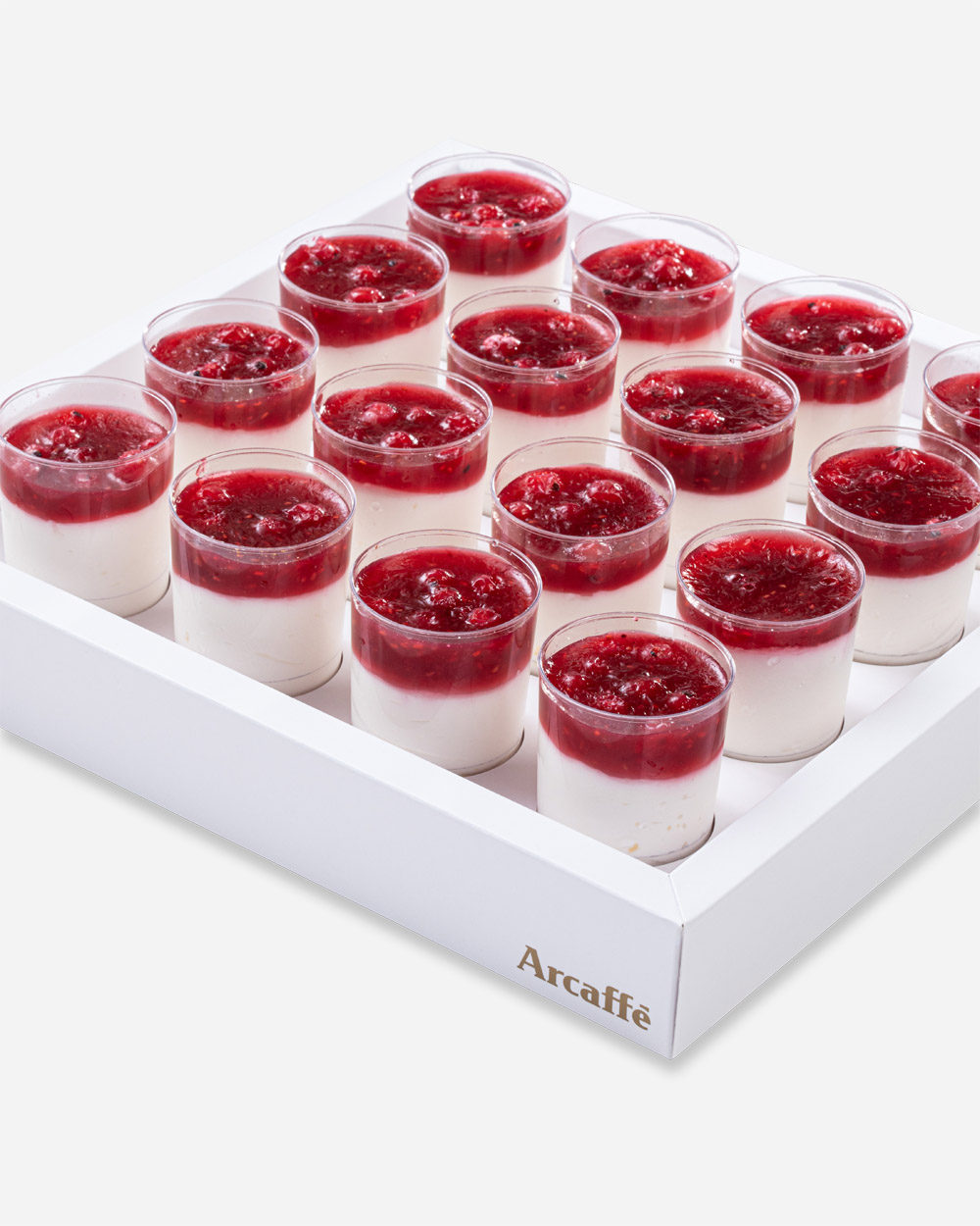 כוסיות טארט מונז’ מוס גבינה וליקר דובדבנים בציפוי פירות יער.