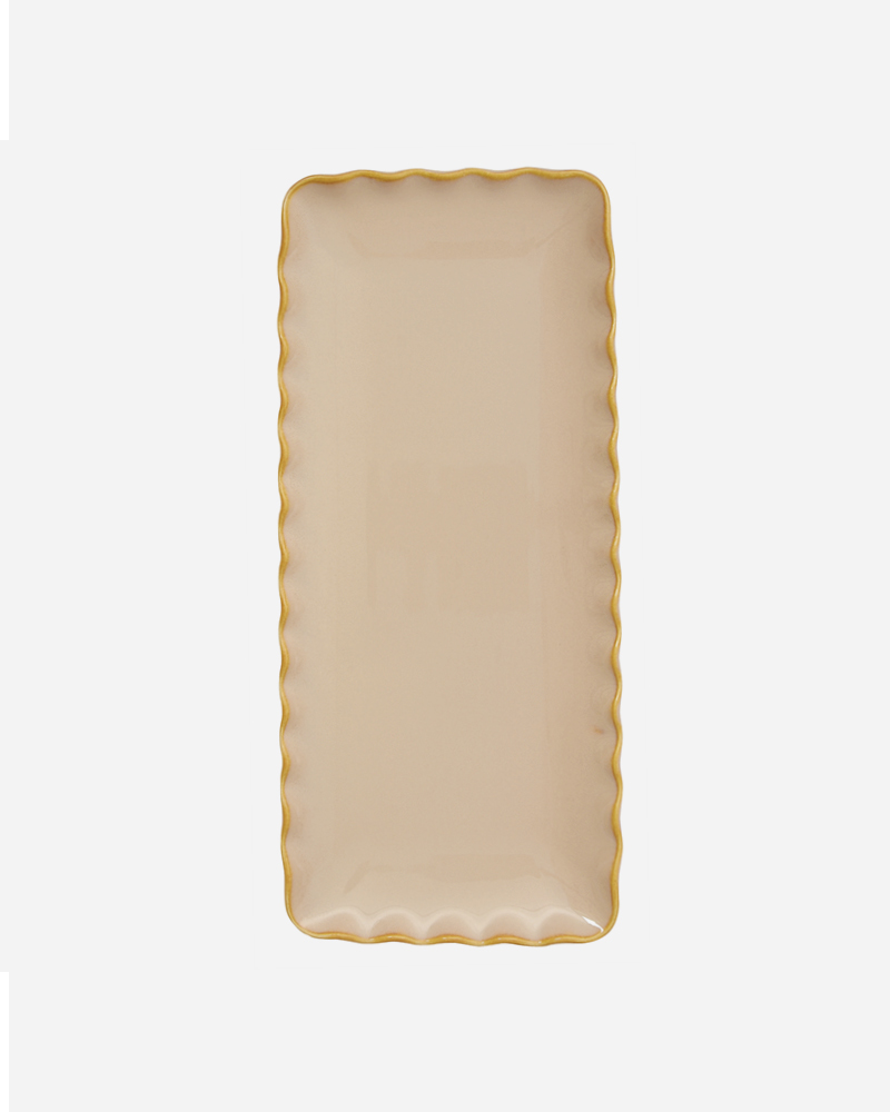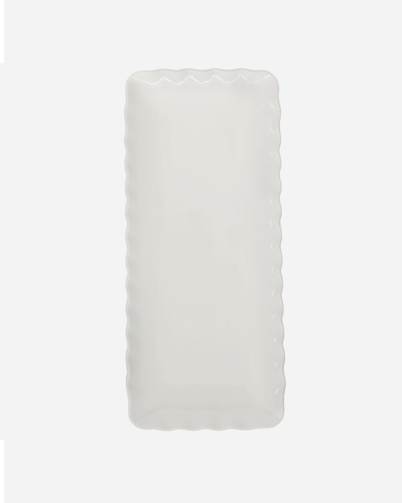 צלחת אירוח מלבנית בעיצוב שוליים גליים.