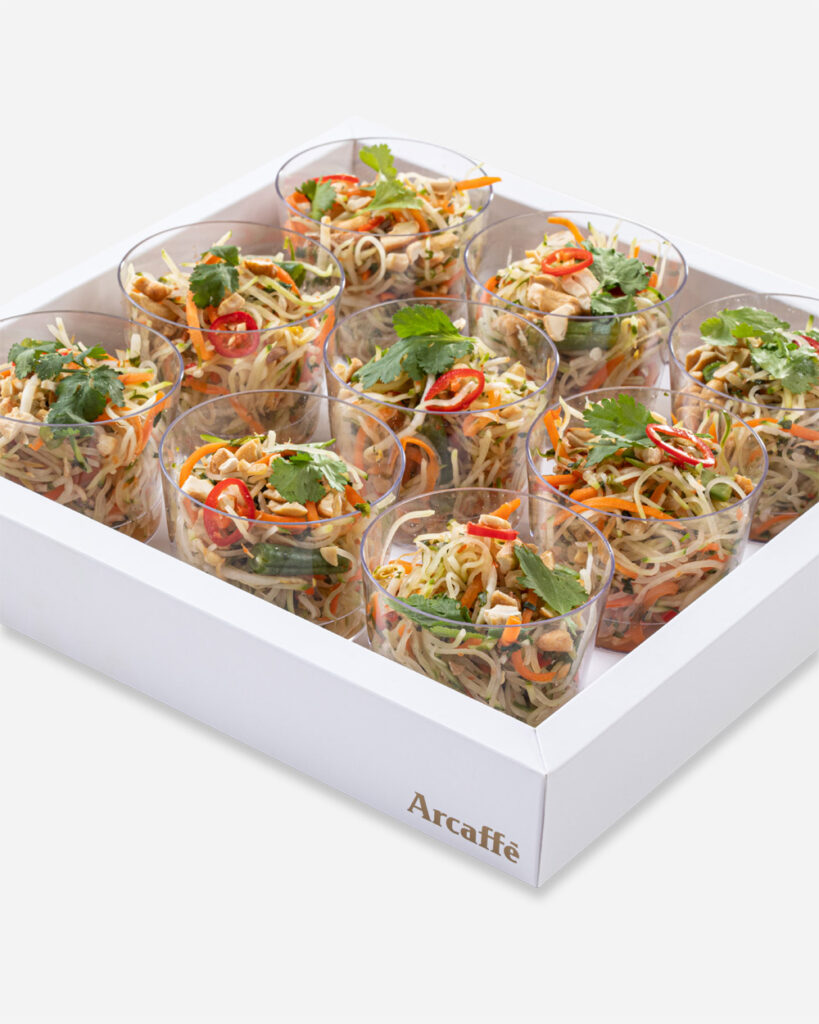 כוסות אישיות עם סלט פפאיה מרענן בסגנון תאילנדי.