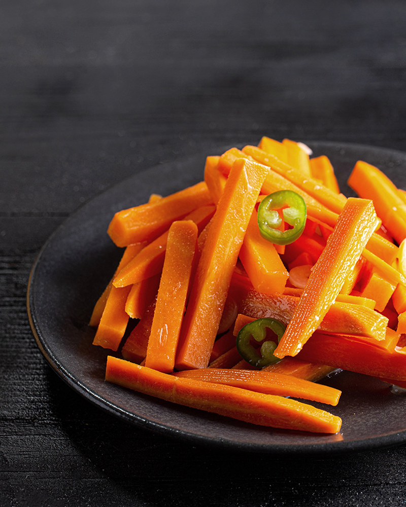 גזר כבוש עם פלפל ירוק חריף, שום ופלפל אנגלי נעשה באהבה, תשוקה וכבוד למסורת הכבישה הטורקית. מסדרת הכבושים של סבא משה, יליד איזמיר, טורקיה אלוף הטרושי (חמוצים בלדינו).